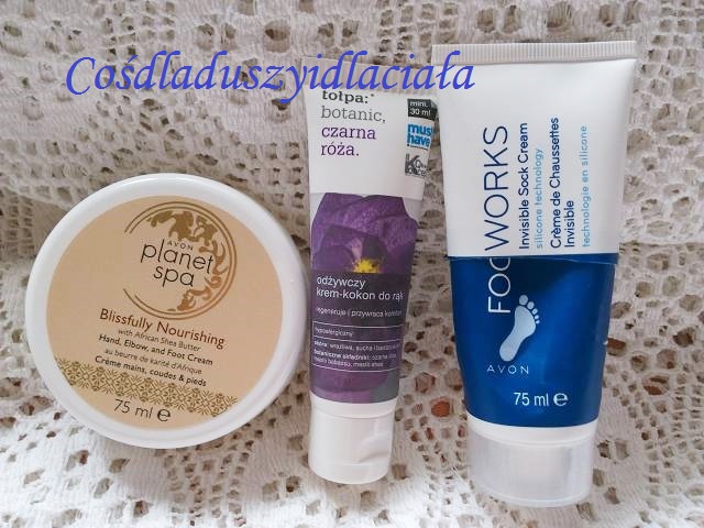 Avon Planet Spa Odżywczy krem rąk, stóp i łokci z masłem shea - bardzo go lubię i używam głównie zimą, jednak tego lata moje pięty potrzebowały go i dał radę ;)